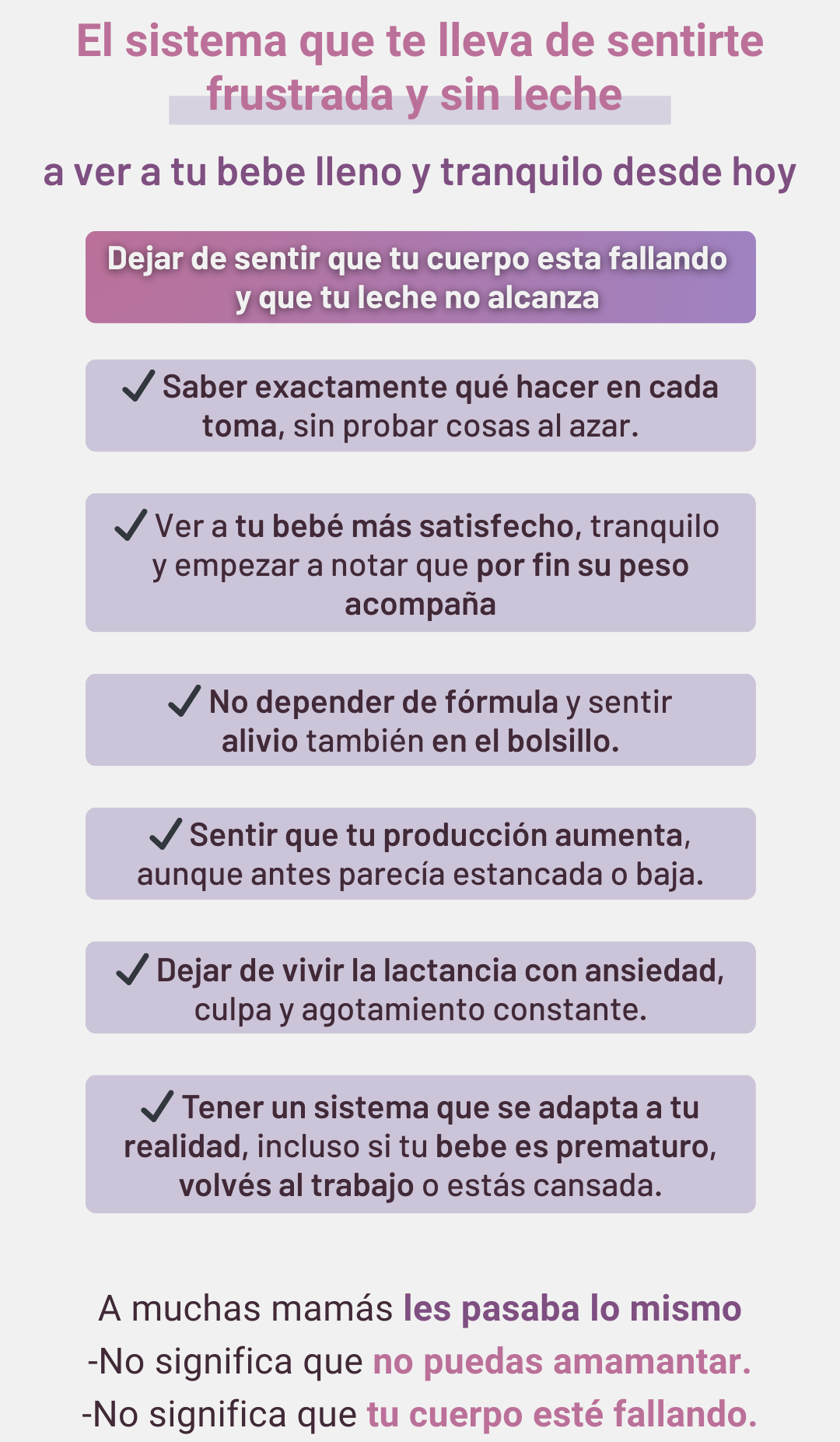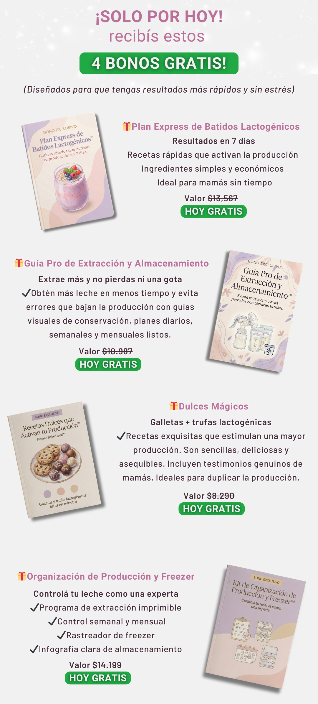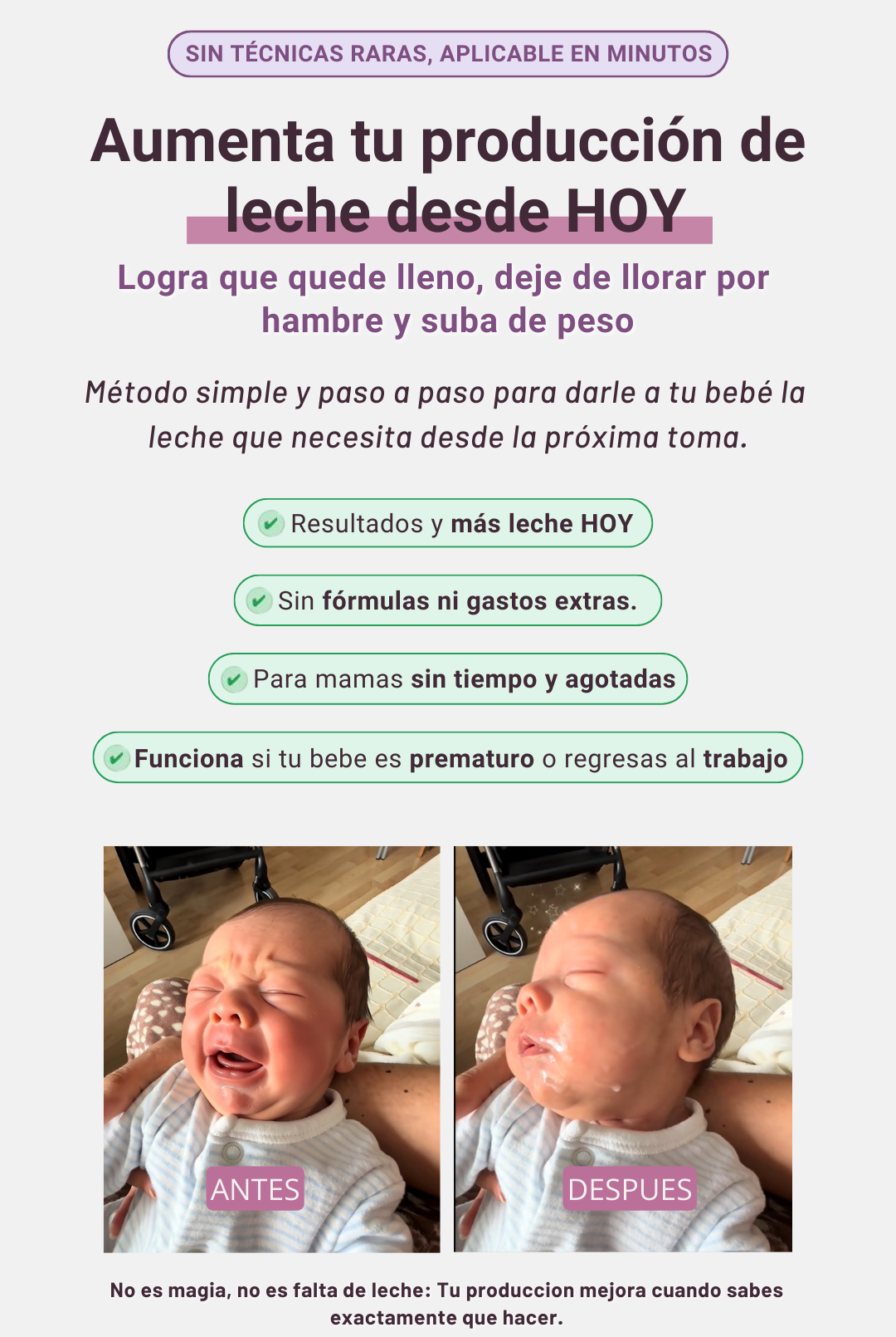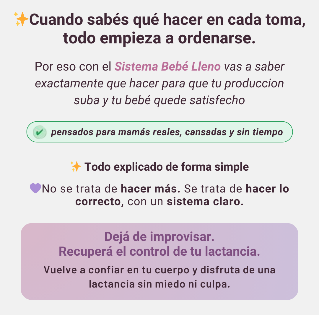 Es para mamás que necesitan aumentar su produccion quieren que su bebé quede lleno, tranquilo y suba de peso sin adivinar qué hacer en cada toma.